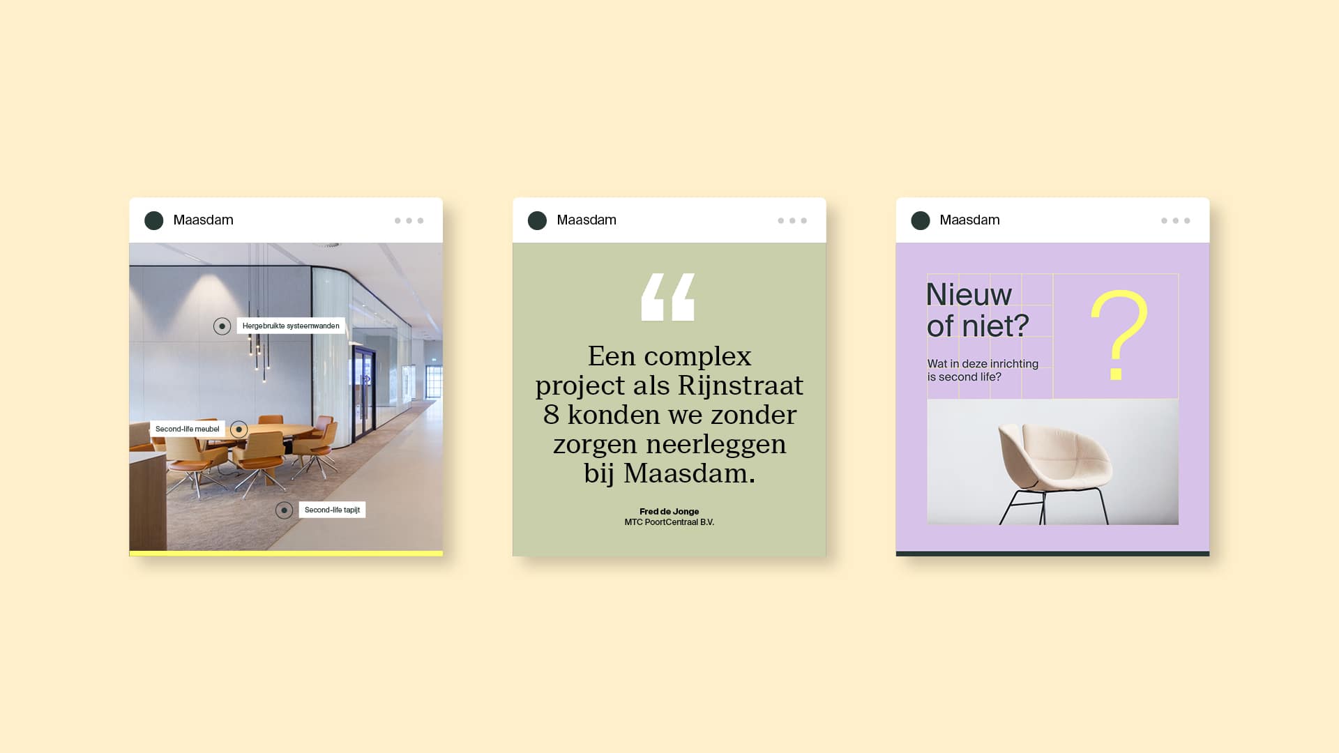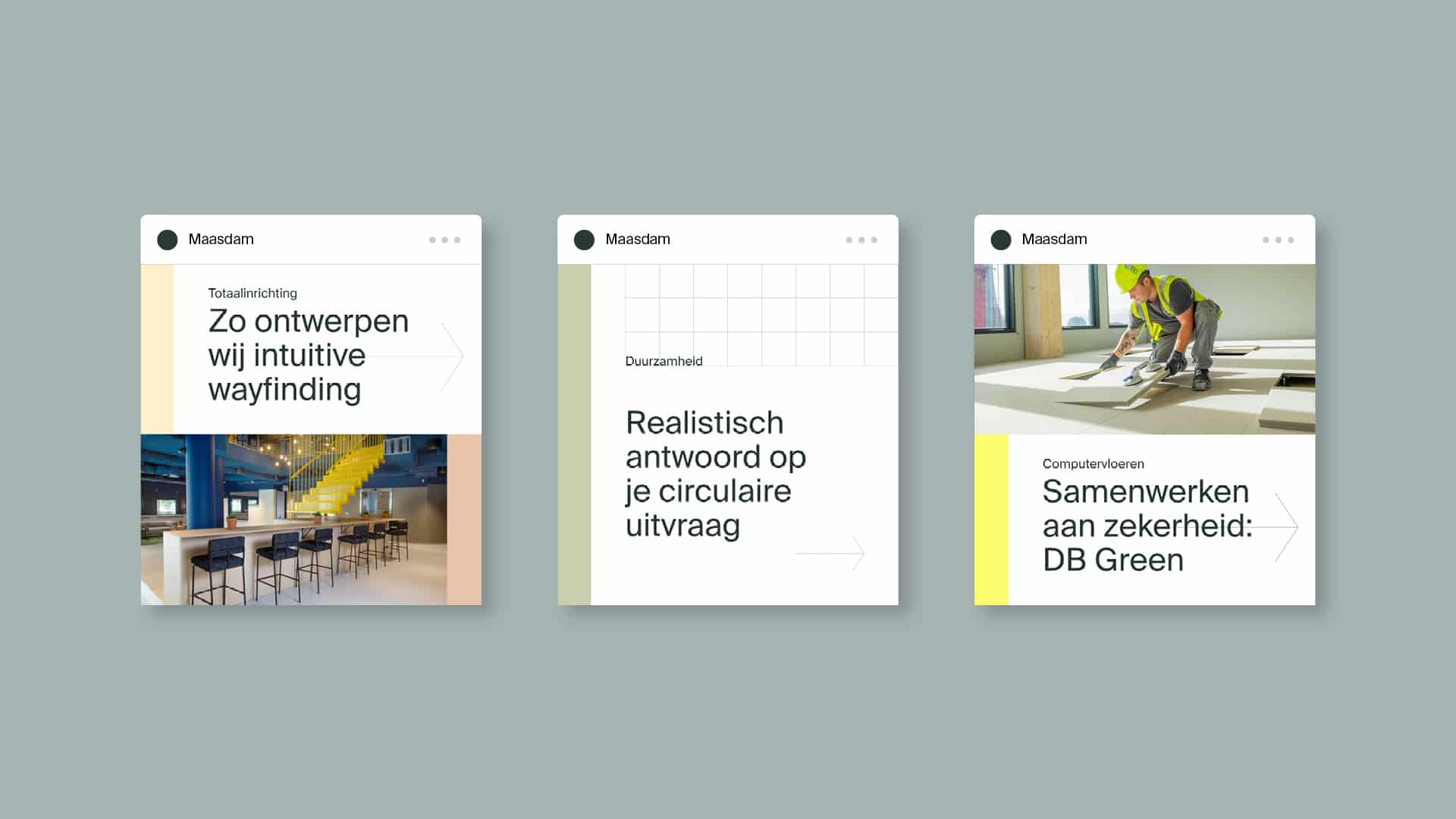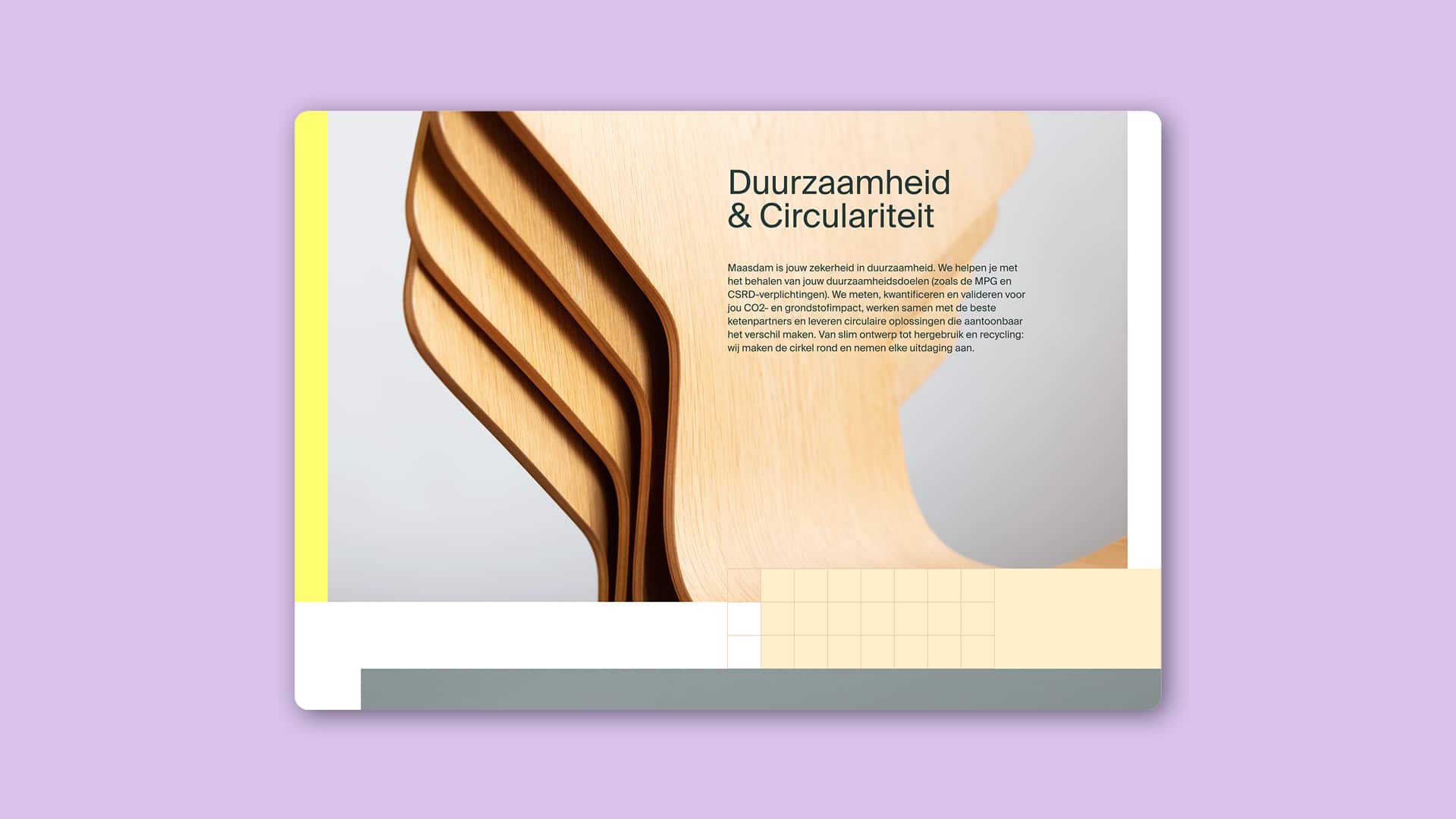 Maasdam is specialist in circulair verbouwen en inrichten. Met een aangescherpt strategisch framework en een nieuw brand book lag er een stevig fundament. De ambitie was helder: dé ultieme klantbeleving realiseren in (af)bouw en inrichting.