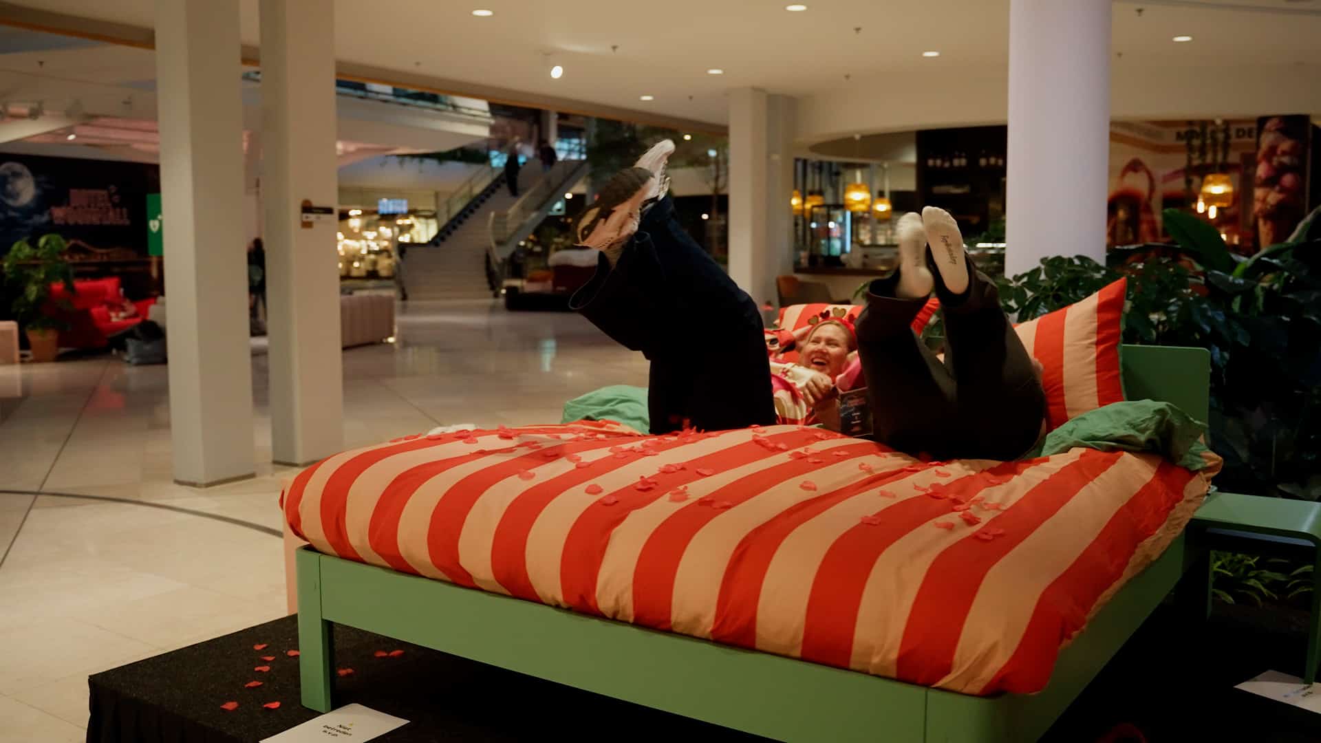 Afgelopen Valentijnsdag checkten vijf koppels in bij een wel heel bijzonder hotel: Hotel Woonmall. Wat normaal een plek is om wooninspiratie op te doen, veranderde voor één nacht in een sfeervolle overnachtingslocatie midden in Woonmall Alexandrium. Met ruim 500 aanmeldingen was de belangstelling voor deze unieke Valentijnservaring groot. De enorme respons laat zien dat bezoekers openstaan voor verrassende en eigenzinnige belevingen en zo’n unieke kans niet willen missen.